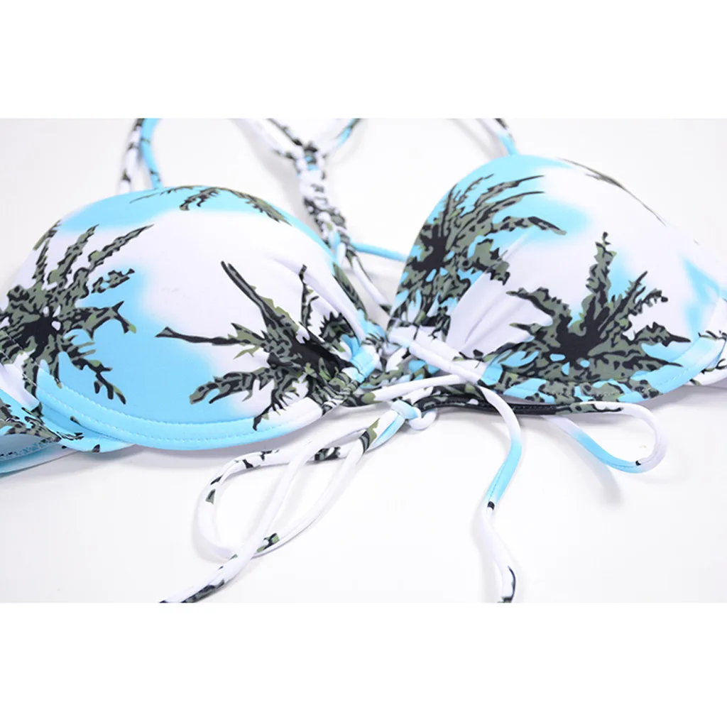 .image for Fashion 2019 New Summer Beach Wear Swim Women Lace Up Printed Padded Push-up Bathing Suit Bikini Se